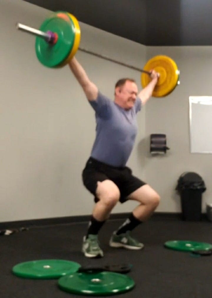 I’ve dabbled in several physical activities over the years: cycling, hiking, cross-country skiing, jogging, swimming, and weight training. In 2022, in my mid 40s, I tried doing cleans by copying online instructional videos. A friend gently pointed out my form was “iffy” (it was atrocious) and advised me to seek coaching. This lead to months of stretching my shoulders and slow improvements to my cleans, and later (around January 2023) my first snatches. I have fallen in love with Olympic-style weightlifting, a trinity of movements known as the snatch, clean and jerk. I have dreams about it. I joined a gym with a weightlifting group and coach where I am the oldest member by over a decade, and we can drop our barbell on a wooden platform, producing a loud, satisfying thud. I wish I had started lifting in my teens. I have injured every limb on my body, in one case requiring months of recovery and physiotherapy, and regret none of it. In 2024 I was the oldest participant in a local competition and lifted the least among the men, but still hit new personal records (PRs).